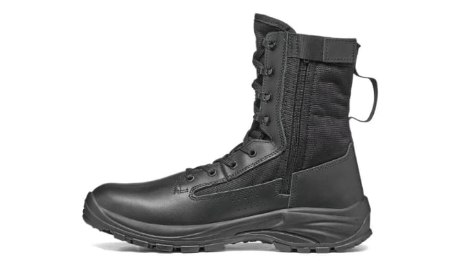 Garmont’s 8-inch boot offering for law enforcement includes the T8 LE 2.0 , a boot that gives officers a non-waterproof boot that is laced but provides easy on/off via a side zipper. It is made from full-grain leather and polyester with webbing reinforcements. Like most other Garmont boots, the T8 LE 2.0 features closed hook eyelets to prevent snagging. Plus, vents allow for air flow.
