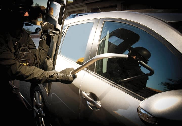 There are a lot of different ways for emergency personnel to break car windows. We've heard of people using hammers, screwdrivers, rifle barrels, and, of course, the small window punches on folding knives, but we've never seen a better tool for the job than the