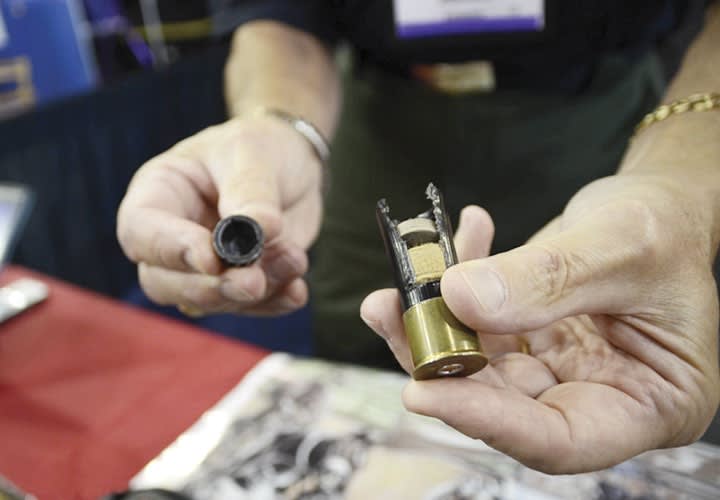 . This 12-gauge shot shell features a slug that’s kind of a hybrid between buckshot and a slug. Fired from 50 yards out, it performs like a slug. At 40 yards, it breaks into two pieces on impact. And at 30 yards or less, it's devastating, breaking into three pieces at impact. So it's like getting hit with three slugs at once. If you're worried about liability, Winchester has an answer for that, too. The Segmented Slug stays in one piece and flattens out when it hits barrier material such as glass or steel. Winchester says the Segmented Slug eliminates the need for officers to carry both slugs and buckshot. We don’t know about that, but we do know that this thing is going to absolutely ruin the day of anyone it hits at 30 yards or less.