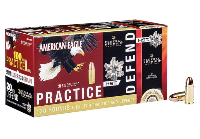 Federal Premium has joined personal defense ammunition and ballistically matched training loads in one package with its Practice & Defend Combo Packs. The company has combined HST loads for personal defense with American Eagle training rounds, which help to provide consistent accuracy, according to Federal Premium. The Combo Packs are available in 380 Auto, 9mm Luger , 40 S&W, and 45 Auto. The HST Practice & Defend Combo Packs offer 100 rounds of target ammunition and 20 rounds of HST Personal Defense. www.federalpremium.com