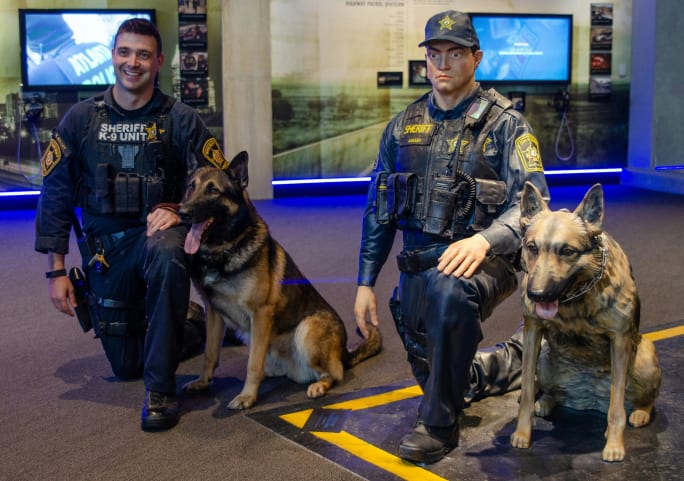 A life-size statue at the museum honors Dux and his K9 handler, Deputy Kory Kelley from the Spotsylvania County Sheriff’s Department in Virginia.