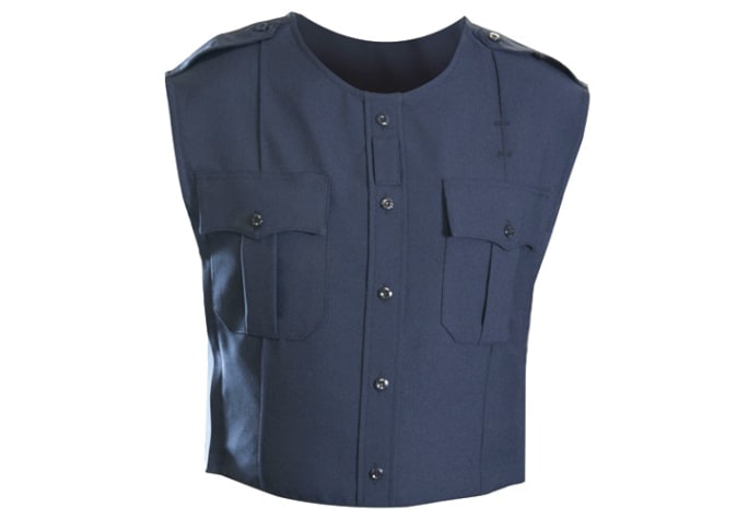Blauer's ArmorSkin external vest carrier looks like a uniform shirt. The idea is to allow officers to wear fewer layers.