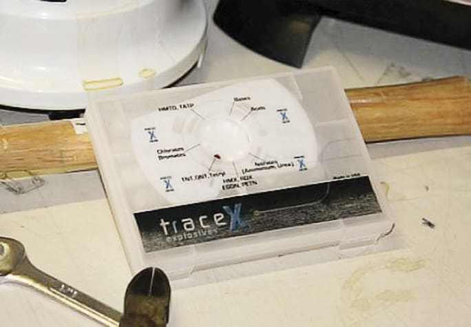 "The beauty of this equipment is it allows you to triage a building," says Buckley. "If you have a search warrant and think a guy used a certain type of explosive, do test swabbings with the Tracex kit. Then you can focus your search on where you've found the trace evidence exists."