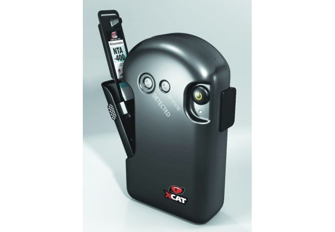 The Red X Defense XCAT is a handheld device designed to reliably identify explosives, in addition to narcotics and gunshot residue. It is a scaled down version of the XPAK, an explosive detection system created for the military that uses fluorimetric analysis (ultraviolet light analysis) to yield a visual signal that indicates the presence of the test substance. Unlike other trace explosive detectors, it provides a simple "detection" or "no detection" response via a green or red light.