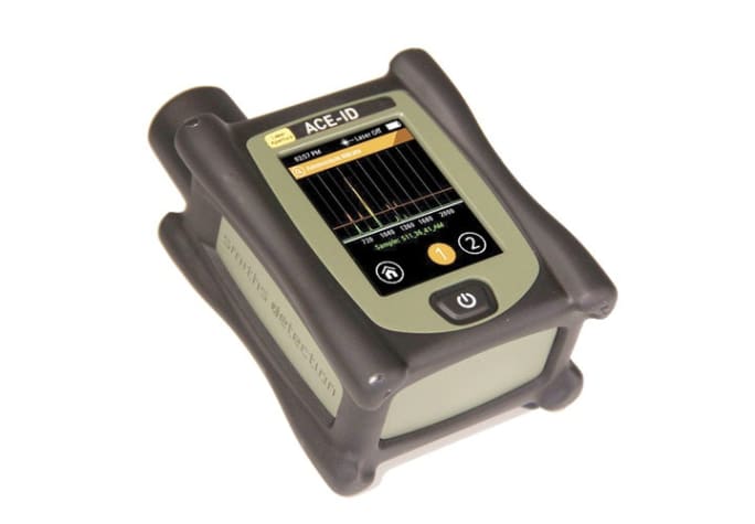 Ace-ID from Smiths Detection uses laser technology, specifically a certain type of Raman spectroscopy, to perform "non-contact analysis" of solids, liquids, gels, and powders. It can even identify two components in one sample without the device—or the officer—ever touching the substance. Materials can be identified through translucent and semi-translucent containers such as plastic and glass, and a software kit allows for remote operation.
