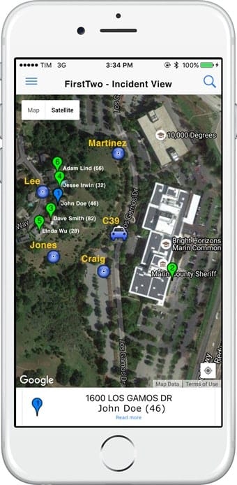 FirstTwo also shows officers the location of other responders. Emergency personnel responding to a call or incident "subscribe" to that incident so that other responders can see them on FirstTwo. The program does not track or monitor officers until they subscribe to the incident.