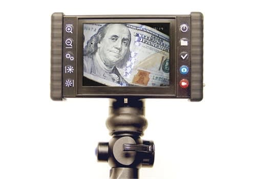 The Perfect Vision V20 Videoscope Inspection System from CSECO is designed for law enforcement vehicle inspections. This one-piece unit has a 5-inch, high-resolution LCD display with 3.5x continuous digital zoom, which reduces eye fatigue. Its push-button photo and video capture system stores up to 8,000 photos and 6 hours of video without the need for attachments and allows users to review the images on the display. The Perfect Vision V20 Videoscope uses video chip technology instead of glass optical fibers so it has fewer breakable parts and is UL certified safe for use in fuel tanks.