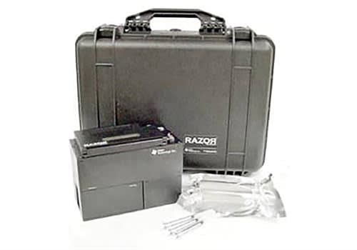 The RAZOR Biological Detector is a battery-operated thermocycler that analyzes and detects threats in real time. At nine pounds, this detector is small enough to bring on-site and can perform thermocycling, analysis, and identification without an external power source. Its reinforced aluminum allows it to be taken into the most extreme environments, and its case is watertight and airtight. The unit comes with an external low voltage transformer connector, battery charger, and software for creating new run protocols, post-run analysis, and real-time data downloads on a computer.