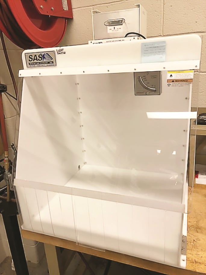 A ventilated hood provides protection from unknown substances that could contain fentanyl. (Photo courtesy Chief Bill Harvey)