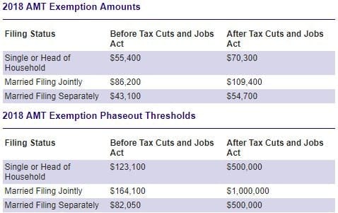 2018 AMT Exemption Amounts
