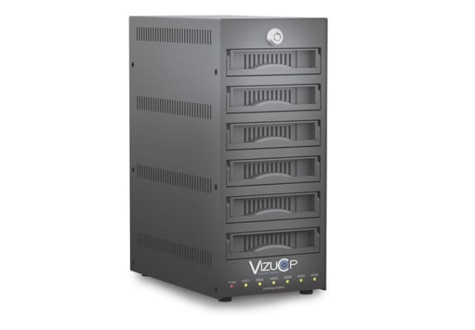 The patent-pending VizuCop Automated Archiving System accommodates up to five slide-rail hard drives used in patrol vehicles and a key-locking slide-rail, 1TB master hard drive. MOTOLinx LE, the VizuCop archiving manager, automatically transfers video clips from each patrol hard drive onto the master drive and organizes them according to officer involved, vehicle, event type, and date.
