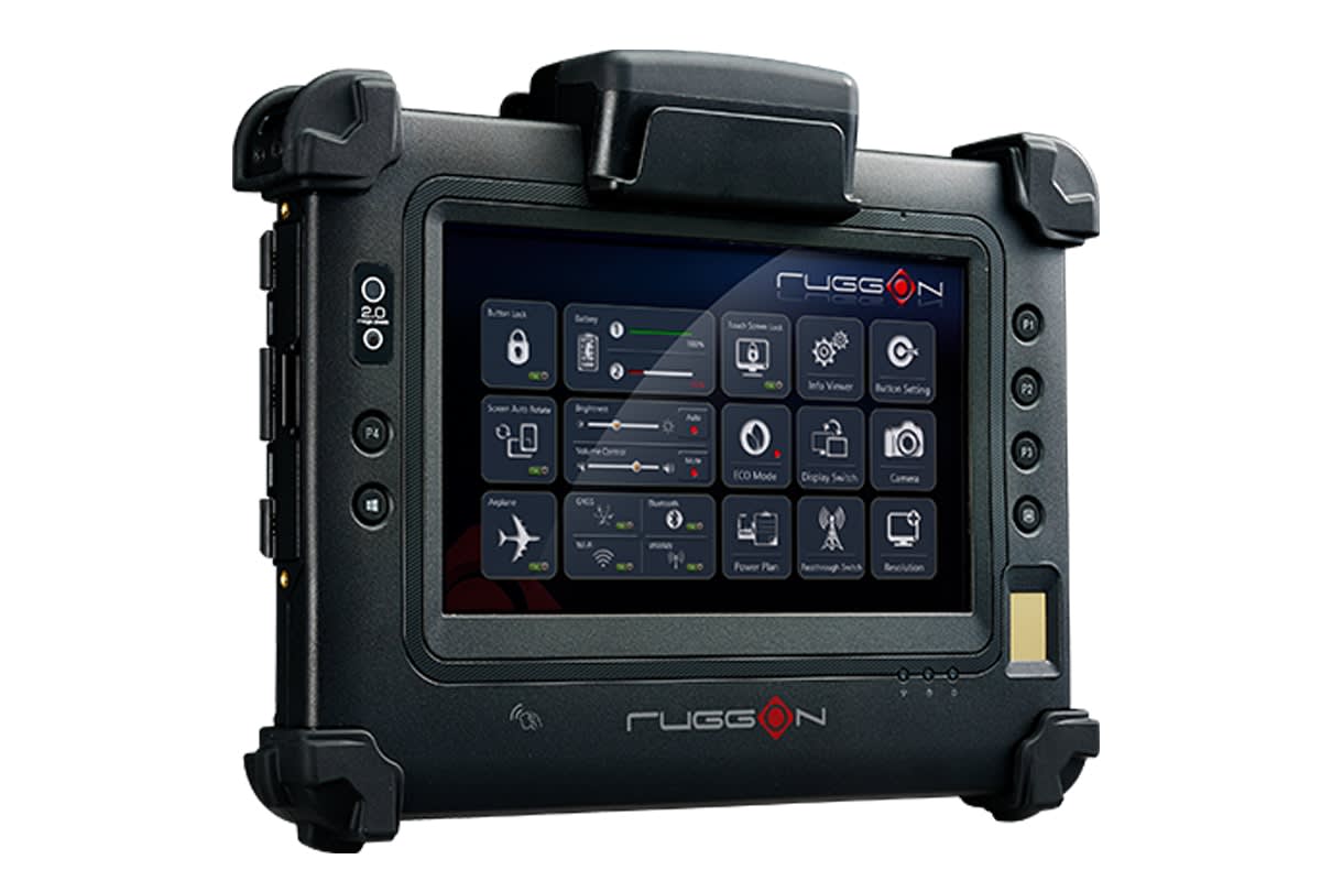 The PM-311B's 7-inch capacitive multi-touch screen is made with Gorilla glass and features optical bonding with an AR/AF sunlight readable solution and 850 nits to ensure optimized readability under direct sunlight. This tablet meets IP65 and MIL-STD-810G with 5-foot drop resistance and has a hot swappable battery design. Many expansion options are available as well. https://www.ruggon.com