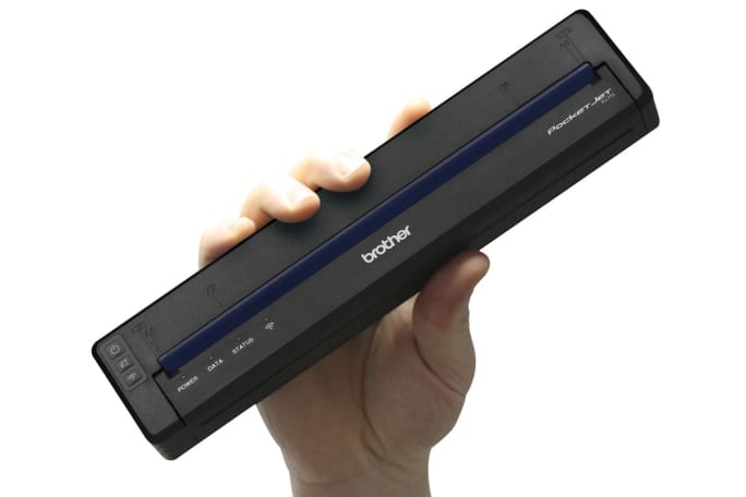 Brother's PocketJet 7 mobile printer allows users to print full-page documents while on the move. With built-in Wi-Fi and AirPrint compatibility, it provides the freedom to print virtually anywhere, from essentially any mobile device via Wi-Fi, Bluetooth, or by USB connection.