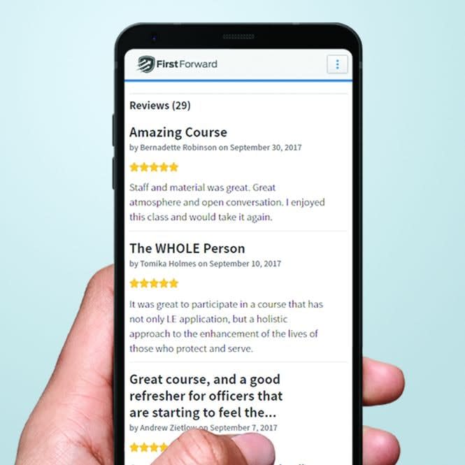 You can find trusted training for your in-service requirements along with 20,000 other public safety professionals on Envisage Technologies' FirstForward.com, a free training marketplace. With new courses added each week, there is always fresh peer-reviewed content. You can now access more than 550 courses—and hundreds of free courses—including every IADLEST Nationally Certified course and both online and in-person options. You can also use FirstForward to track your field experience, commendations, and certifications in one easy online account. info.firstforward.com/marketplace
