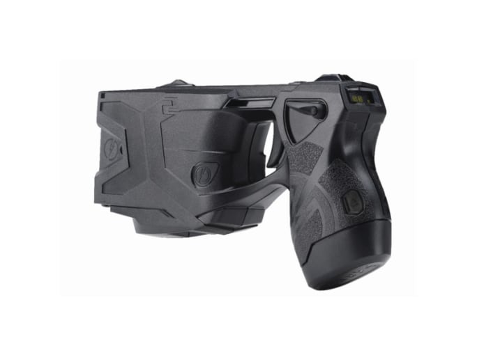 Axon's TASER X2 features dual lasers, cross-connect, and a more accurate smart cartridge. This two-shot option was developed with agencies' most requested features in mind, and includes features such as a backup shot and a warning arc. The X2 can be fitted with an Axon Signal PPM that turns on nearby Axon body-worn cameras when an X2's safety is disengaged.