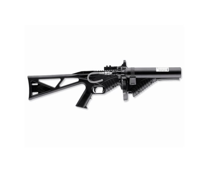 The patented ALS Alstac Single-Shot launcher is available in both 37mm and 40mm versions. This lightweight platform can function in single- or double-action mode and is designed to handle a variety of less-lethal munitions. Its numerous features include an integrated quad MIL-STD-1913 rail and shell removal scallops.