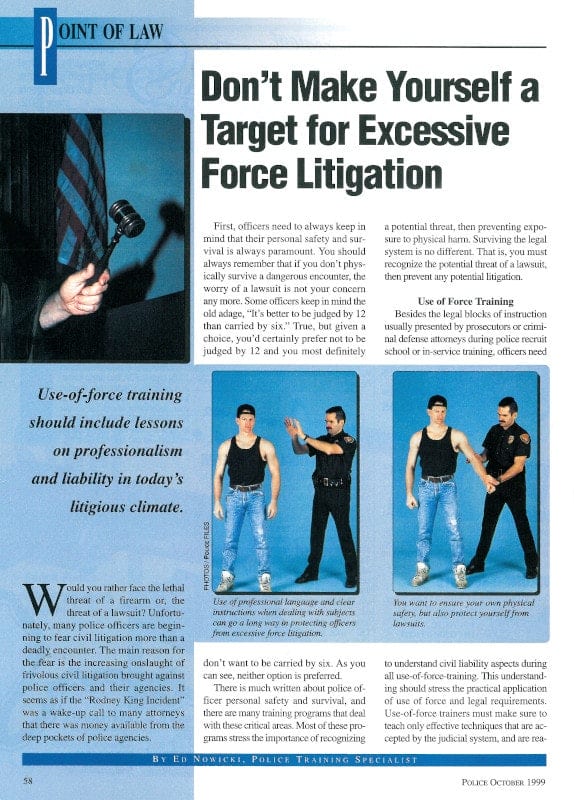 In past October issues of POLICE we've covered officer safety on various levels, including how lazy tactics can get you hurt, how to secure subjects properly, and how to protect yourself from lawsuits over use of force.