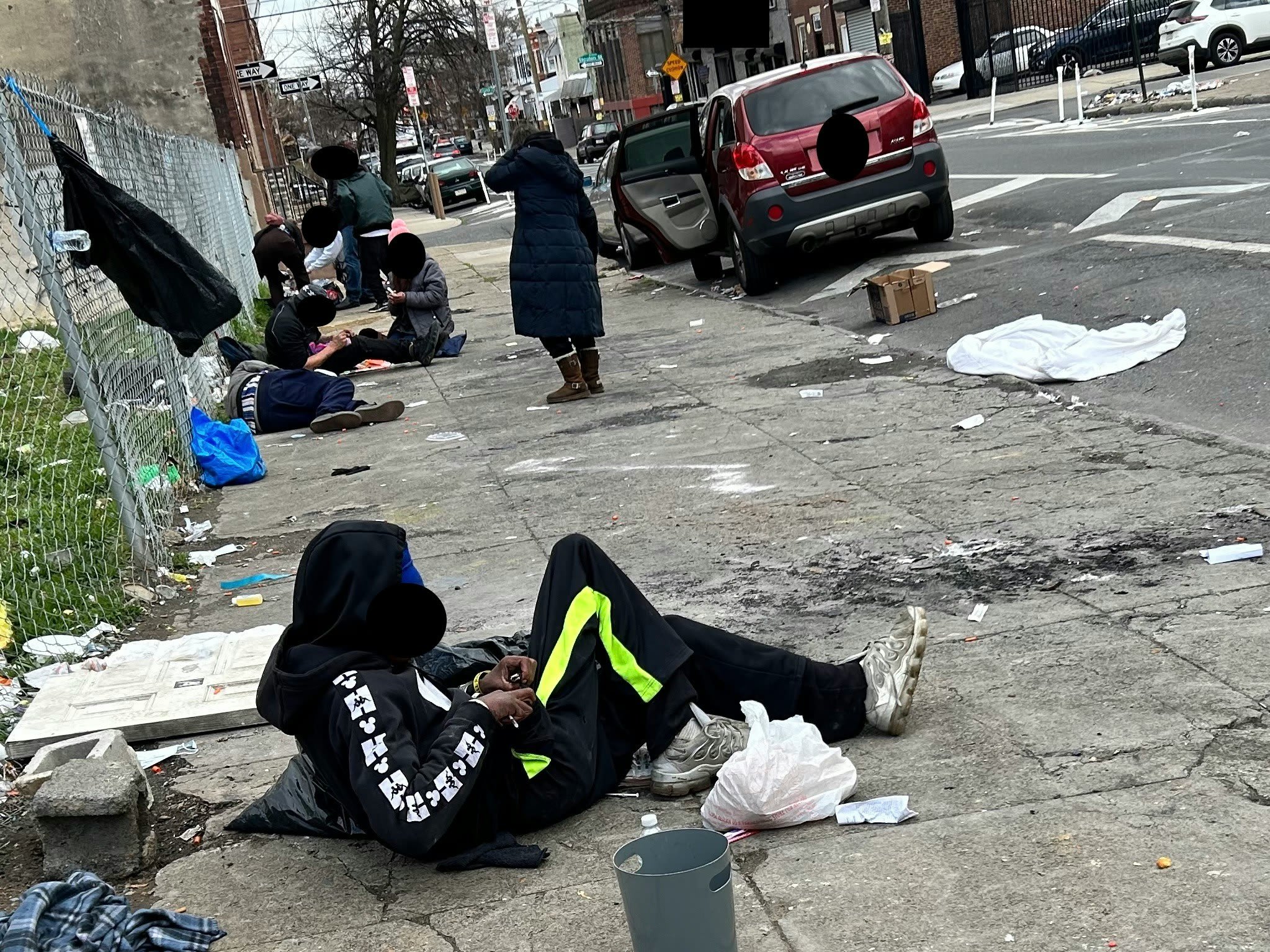 Open narcotic usage on the streets of Philadelphia.