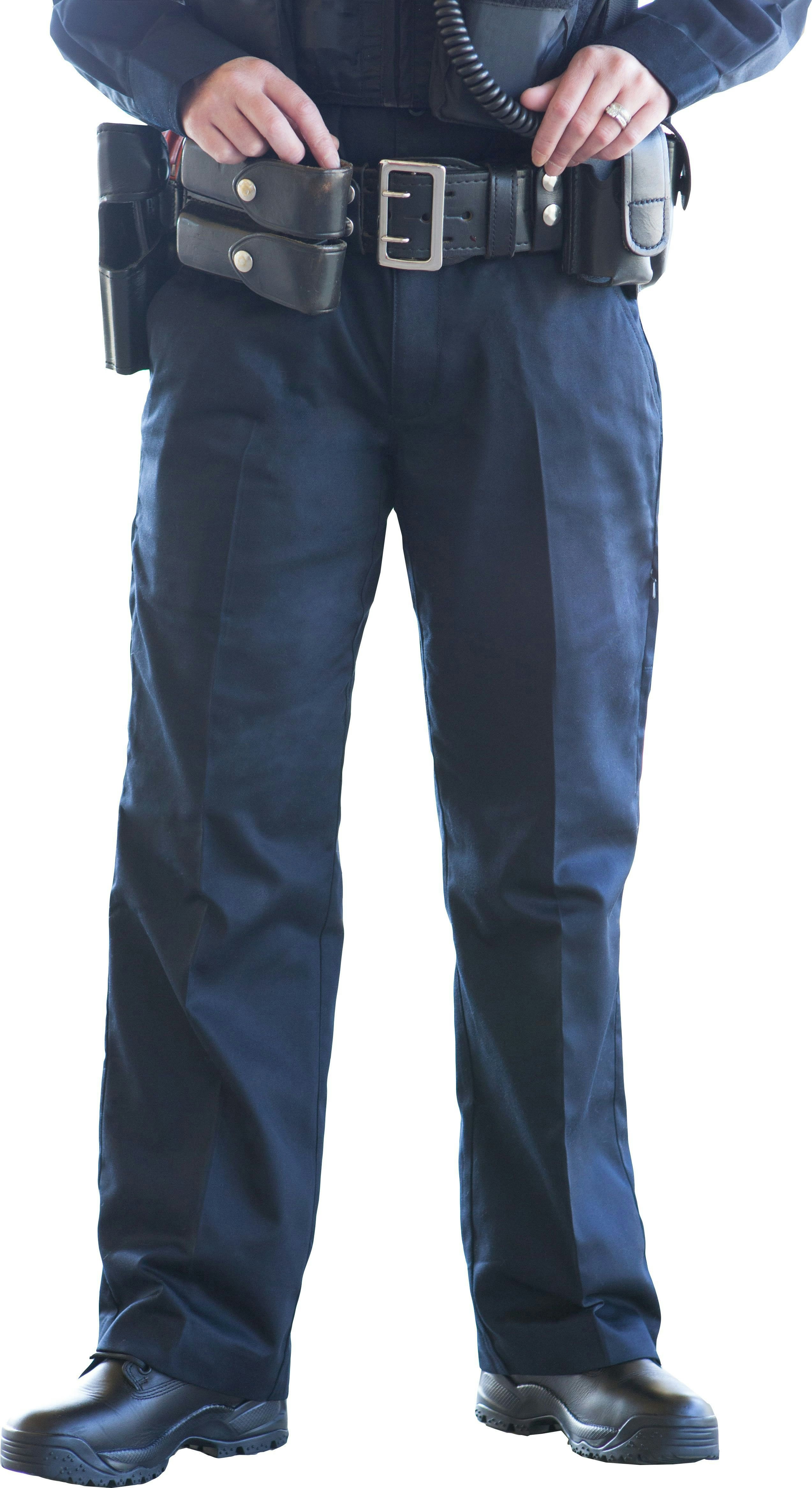 Some female officers still prefer to wear male uniforms, but that's less common now because there are so many female fits available that are comfortable and look professional. Features include stretch fabrics that stretch in the right places, waistbands that are curved instead of straight, and cuts that are looser in areas like the hips and thighs but don't bag in other areas like the crotch.