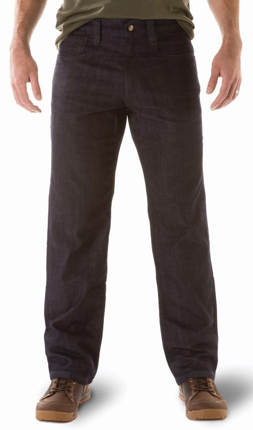 Available in both straight leg and slim fit, regular and dark wash indigo blue, the Defender-Flex jeans come in a variety of sizes to fit just about everyone. They're even dyed to give them the appearance of a worn-in pair of jeans. My pair fit true to size and were incredibly comfortable right off the rack. The mechanical stretch fabric allows for incredible freedom of movement and eliminates binding when kneeling and crouching. The pockets are a bit shallow but perfectly functional and the YKK zipper is robust. All of the stitching is reinforced to greatly minimize rips and tears.