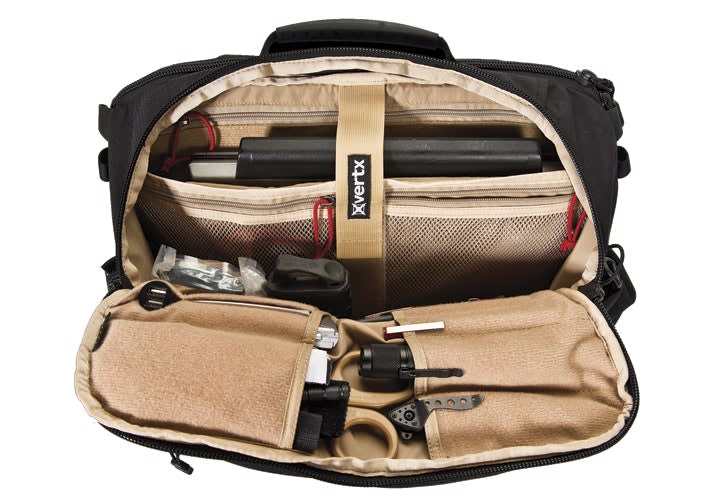 The EDC Courier holds a maximum of 23 liters and can stow everything from a 15-inch laptop to a full sized pistol with ease. Made of heavy-duty nylon with robust zippers and pulls, this bag will serve you well for a very long time. Available in black, black with red trim, and smoke gray, the EDC Courier is available now direct from Vertx. If your assignment involves a little more paperwork than the average cop it is an excellent choice.