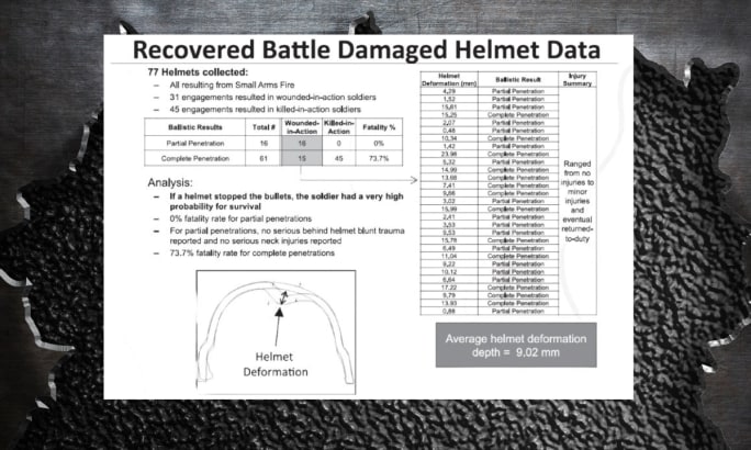 The U.S. Department of Defense ran a study in 2018 on 77 helmets that had been shot during combat. No manufacturer fluff. Just facts. If the bullet punched through, 74% of the time, the person died.