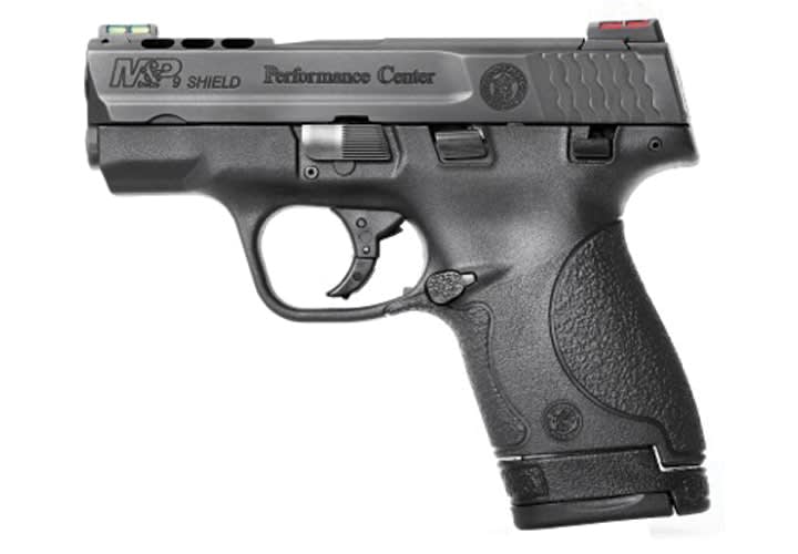 Smith & Wesson will be showing the Performance Center M&P Shield pistol with a factory ported barrel and slide in both 9mm and .40 S&W. Engineered on a high-strength polymer frame measuring .95 inches wide, the Performance Center M&P Shield has a 3.1-inch factory-ported barrel. The new barrel along with the pistol's three precision cut ports across the top of the stainless steel slide aid in reducing muzzle flip and improve the ability to remain on target after firing. The new M&P Shield pistols have been further updated with fiber optic sights and an enhanced trigger. The Performance Center M&P Shield has an 18-degree grip angle and a fixed, textured backstrap with additional texturing at the forward portion of the grip. An extended trigger guard allows for operation of the pistol with or without gloves. The new M&P Shield is also engineered with a Performance Center sear for a quick trigger reset and a Performance Center striker plunger for an enhanced trigger pull. Internal features of the new M&P Shield mirror the standard M&P Series. The Performance Center M&P Shield is shipped with both an extended and flat magazine offering consumers the ability to customize the length of the grip.