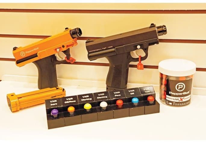 ) introduced its Tactical Compact Pistol, a PepperBall gun small enough to be worn on a duty belt. The pistol's magazines hold both six rounds and the pneumatic power to propel them.