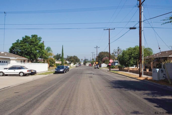 View of the residential street where Sgt. Wyatt and Officer Ellis stopped the minivan driven by Adolph Anthony Sanchez Gonzalez.