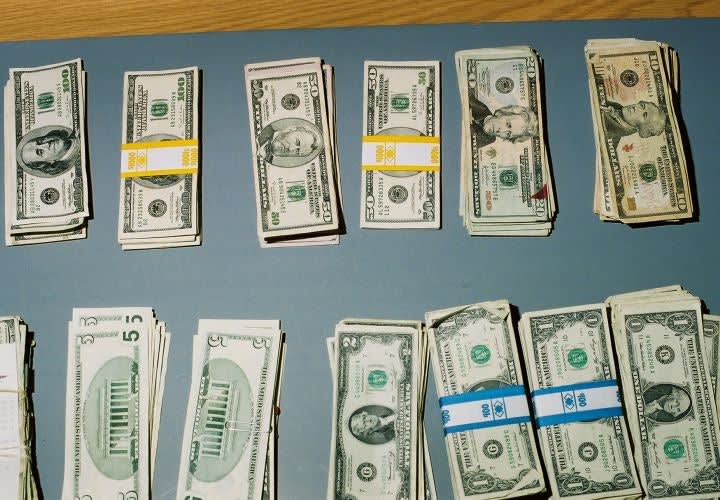 Police found stacks of bills in the trunk of the car the robbery suspect was driving. Photo: Skokie PD