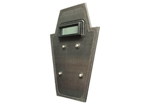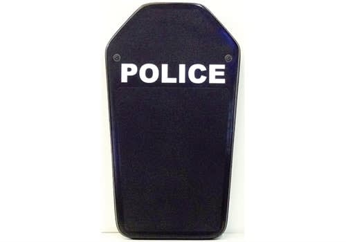 is a quickly deployable ballistic shield. It mounts to the patrol vehicle door panel until it's needed, providing instant access to protect the head and neck while seated in the vehicle. The shield was designed and marketed by law enforcement and is rated at NIJ Shot Level IIIA. It can stop up to .44 Magnum, 240-grain pistol rounds and has exceeded NIJ Level III stab tests. The ballistics composite material is enclosed in a tight Cordura nylon fabric cover to help improve the material's edge strength and provide padding for the user's arm. Optional additions to the shield include a flashlight mount and forearm strap.