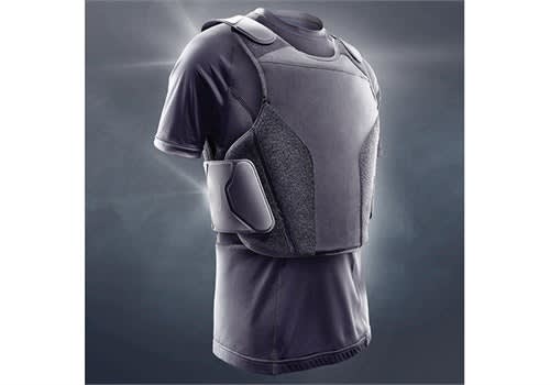 HyperX from Safariland Armor's product line is a lightweight, scalable solution that exemplifies the next generation of armor. This integrated system consists of a T-shirt base layer and an integrated ballistic panel; the lightweight compression four-way stretch fabric moves and flexes as the body does. Both materials have plate pockets for hard or soft armor trauma plates. The sleek, athletic styling and performance materials are designed to offer exceptional comfort and flexibility for all-day wear. It has an interchangeable liner system to keep the body warm or cool in extreme conditions.