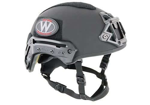 is designed for law enforcement and military operators. The helmet has a hybrid composite shell with unique geometry for increased strength and optimal fit. It features a new boltless Cam Fit retention system, which allows the helmet to easily adjust to the user's head size. The helmet's Zorbium foam impact liner protects against impact and allows for an overhead communications headband, and it features a mounting system that is compatible with all Exfil accessories. The helmet is available in weights of 2.6 pounds and 2.75 pounds; it also features a ballistic performance of NIJ Level IIIA.