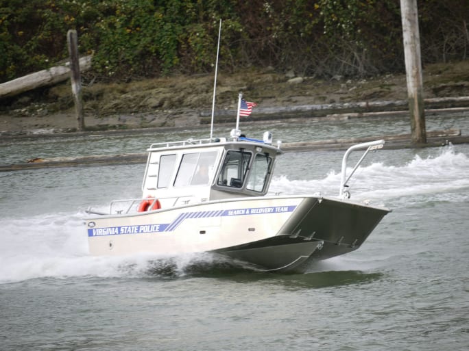 The Virginia State Police Search and Recovery Team operates a pair of easily trailerable Munson 24-foot landing craft that are used for dive operations, swift water rescues, evidence recovery, and wildland fire and oil spill response. Outfitting includes a walk around cabin with forced air heater, dive bottle racks, dive ladder, tow post, lifting davit, Lowrance HDS-9 side scan sonar, FLIR infared camera, and EZ Loader trailer.