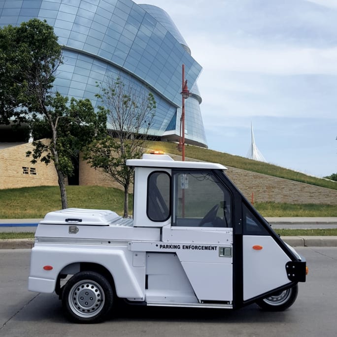 Westward Industries' GO-4 parking enforcement and light patrol vehicle is used by cities from San Francisco to New York. It uses a 100+-mile-range lithium battery pack or 66 hp gas engine and has a very small footprint, allowing for exceptional maneuverability while alleviating traffic congestion. Built domestically with a 2.5-inch steel roll-cage, this vehicle is made to offer superb safety and durability. Cities deploying these vehicles can increase productivity and reliability, therefore recognizing a high return on investment.