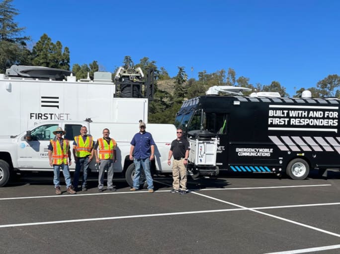 Part of the FirstNet team is shown with deployable assets staged to provide communications during the Super Bowl in Inglewood.