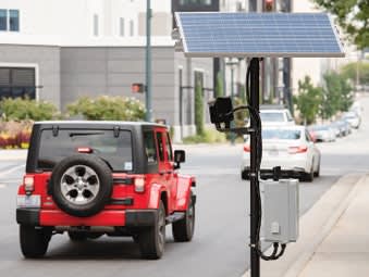Leonardo's Street Sentry is a pole-mounted, solar-powered fixed LPR system.