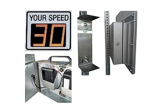 Radarsign's TC-400 is a portable battery-powered radar speed sign weighing only 20 pounds. With multiple mounting brackets, officers can move and secure the sign to different pole locations without tools. And you can use this sign in places that a trailer would never fit. The TC-400 is easily readable up to 400 feet away and is ideal for 5 to 35 mph speed limit roads. An Android app is also available.