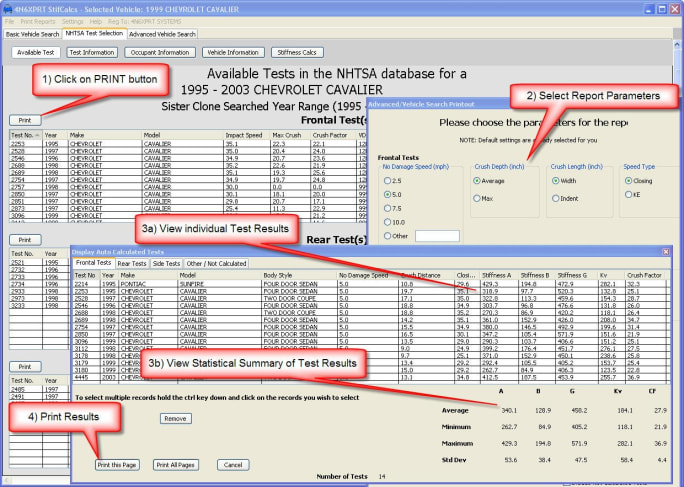 A new update to the 4N6XPRT StifCalc program has been released and is currently shipping. The update incorporates a force-balance calculation module for accurate crush energy evaluation in vehicle collisions, where one of the vehicles has little or no crash test exposure. In order to increase the program's usability as a research tool, the program now allows the user to download all of the available photos, videos, and contractor reports for a given test. The program will still allow the user to develop their own class of vehicle, easily sort data columns, and print summarized stiffness data for the matching tests with the descriptive statistical data.