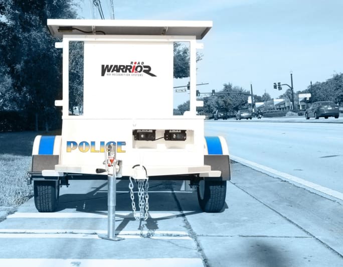 The Road Warrior ALPR System by NDI Recognition Systems reads 3,600 license plates per hour, and wirelessly alerts law enforcement when a capture matches the hotlist. The portable Road Warrior can fight crime, such as human trafficking and stolen vehicles, while also managing traffic as it duals as a functional speed trailer. Additionally, the Road Warrior houses a complete ALPR system, which runs covertly in tandem with the radar speed system, comes complete with Infrared color cameras for day and night operation, and has an augmented solar panel battery, which power the system for three to five days without having to recharge.