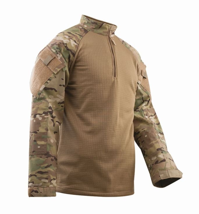 Tru-Spec's TRU 1/4 Zip Winter Combat Shirt is made for use in colder climes with a Performance Plus grid fleece body for increased breathability and improved moisture wicking, and polycotton ripstop Tactical Response Uniform sleeves lined with grid fleece. The shirt gets its name from its quarter-zip-front mandarin collar including a zipper cover hood for comfort. It also has adjustable hook-and-loop cuffs and a pencil stall. For strength, the shirt has reinforced shoulder pockets and reinforced external elbow pockets with external openings for elbow pads secured with hook-and-loop closure. Available in multiple colors: MultiCam/coyote, black/black, khaki/sand, olive drab/black, and navy/black. www.truspec.com