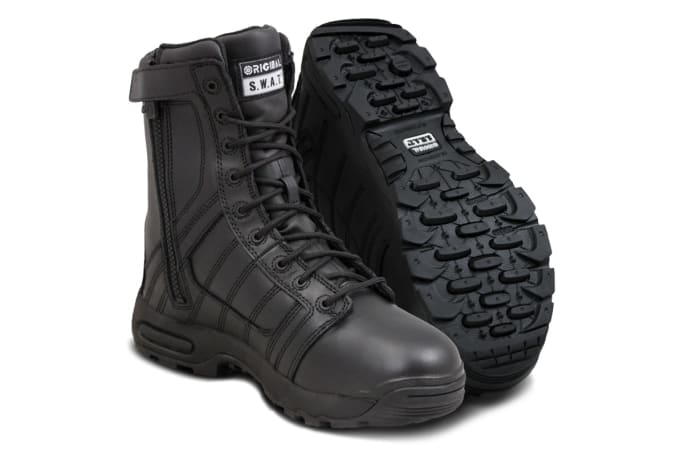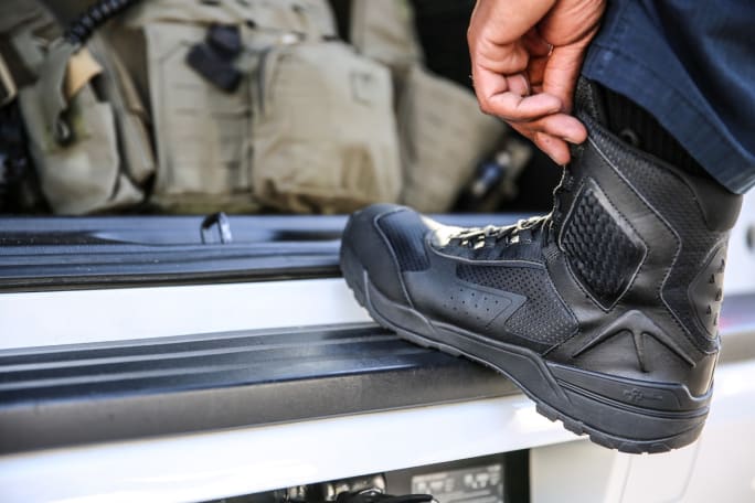 An ultralight tactical boot featuring a regulation-friendly polishable leather toe, the TR1040-LSZ Ultralight Tactical Side-Zip Boot is part of Tactical Research’s 10-40 series, engineered to provide maximum comfort and support without the weight of standard duty boots. At the core of the new series is the PTO (Power Take Off) orthotic footbed; a proprietary, load-bearing removable insert that combines the benefits of shock absorbing foam with enhanced arch support. The 10-40 Series is available in regular, side zip, and waterproof side zip versions.