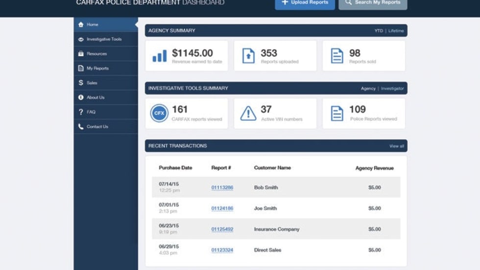 Carfax for Police is a password-protected Website dedicated to law enforcement that provides enhanced investigative tools.