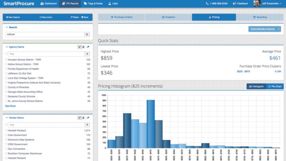 SmartProcure is an online database that allows members to login and search purchasing information from 7,000 local, state, and federal government agencies. Through the online Web portal users have access to 170 million purchase orders, including historical data going back to 2008.