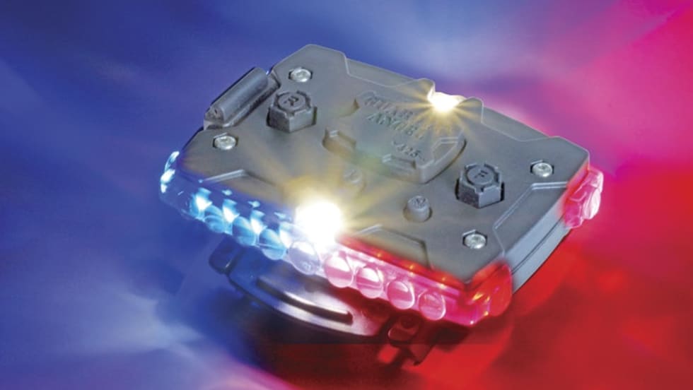The Guardian Angel is a slim-profile, personal LED light system, designed to be mounted to virtually anything thanks to the variety of accessory mounts. It is rechargeable, very durable, and available in a variety of colors and light patterns.