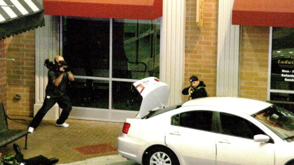 Officer Jim Simone glanced at a teller to his left. The two knew one another well enough for Simone to see that she was having a hard time preventing a bizarre expression from registering on her face. Simone realized very quickly that he had walked into a robbery in progress.