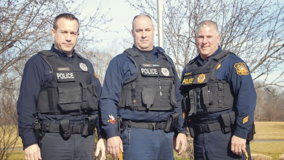 An elderly woman and her son owe their lives to a detective and two officers from the Ewing (N.J.) Police Department who risked electrocution to extract the two from their crashed van.