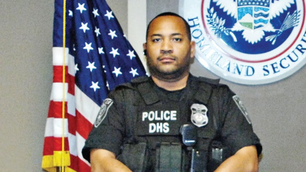 A young neighbor came to the door of Inspector Anton Sampson of the Federal Protective Service, Department of Homeland Security, and told him a man was holding her friend at gunpoint in the house down the street. He rushed to the girl's aid and brought her to safety.
