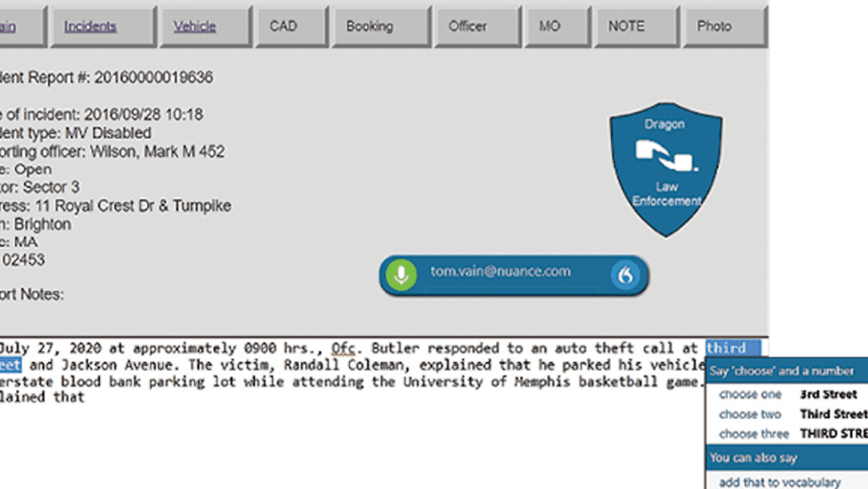 Nuance’s new Dragon Professional Anywhere for law enforcement makes it easier for officers to create reports and take notes in the field.