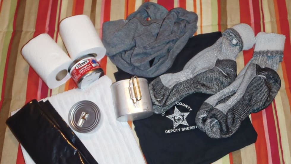 A go bag is usually filled with loaded magazines, water, and snacks. It's a stop-gap to keep you functioning while away from your patrol car and main resources for a few hours.
